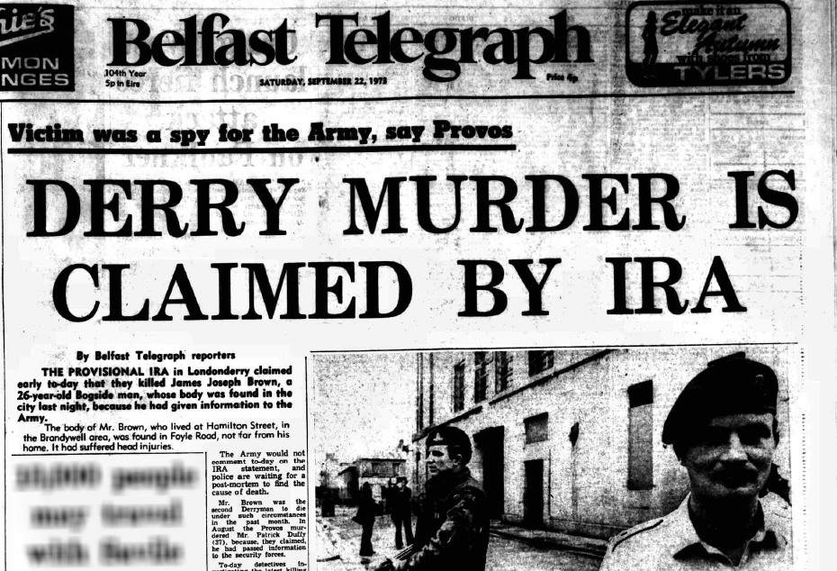 Not only did McGuiness oversee and participate in the abduction, torture and execution of Patrick Duffy – and in the attempted disappearance of his corpse – but he also a few weeks later oversaw the abduction, torture and summary execution of another Derryman, James Brown of the Brandywell.