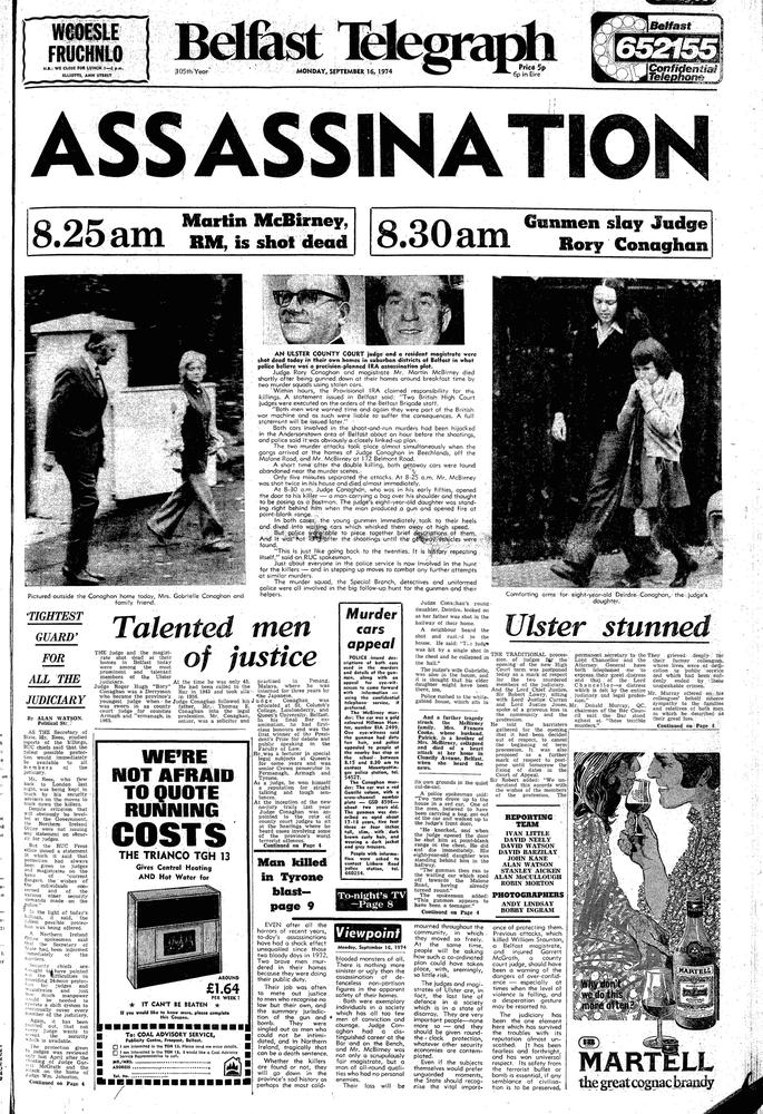 On the 16th of September, 1974, the IRA murdered Judge Rory Conaghan, a Catholic, at his home in front of his 9 year old daughter, Deirdre.