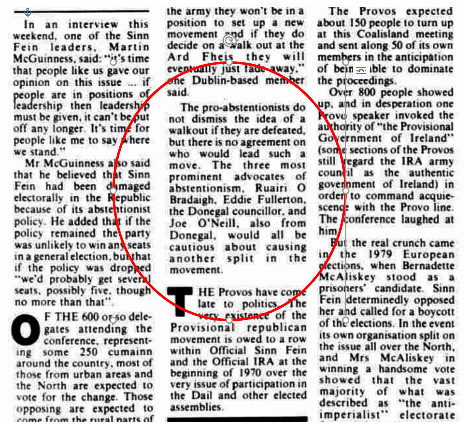 Many young people who wanted to join the IRA but who didn’t know any IRA people in their area were able to contact the IRA through the “good offices” of publicly identifiable Sinn Féin persons.