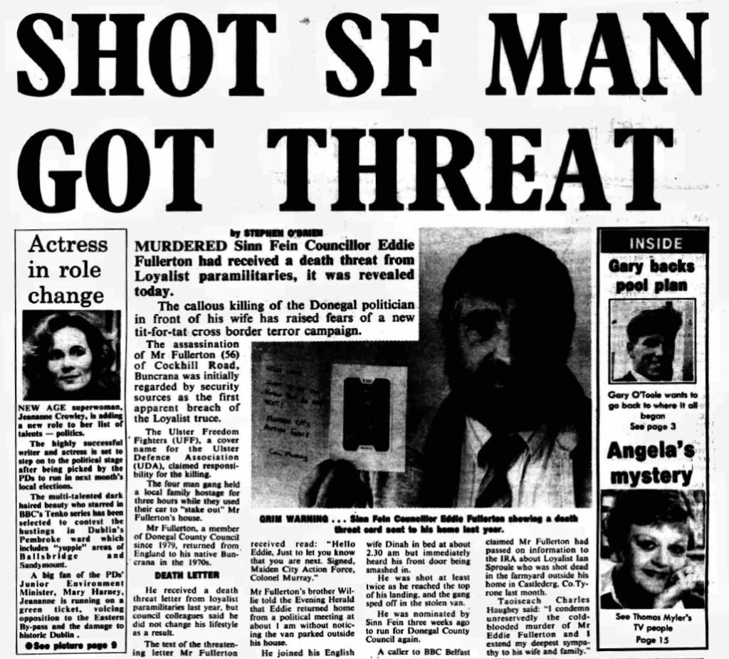 Eddie Fullerton was an admitted leading member of Sinn Féin in the tiny seaside town of Buncrana, County Donegal.