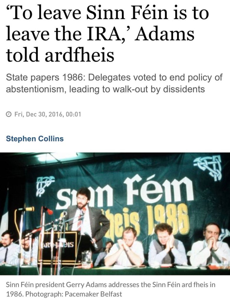 Two undisputed leaders of the IRA and later of Sinn Féin made it abundantly clear during the watershed Sinn Féin Ard Fheis of 1986 that the IRA and Sinn Féin were one.