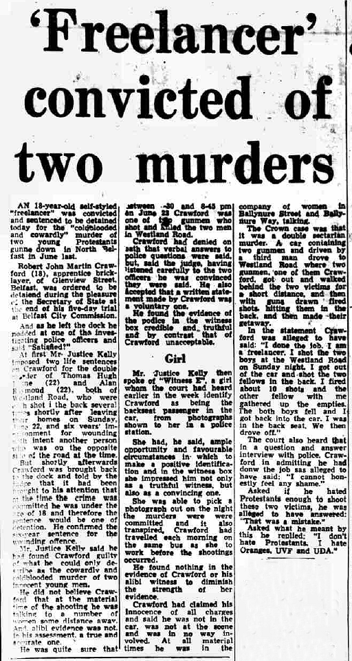 Crawford ‘broke in interrogation’ and made a full statement to the Royal Ulster Constabulary.