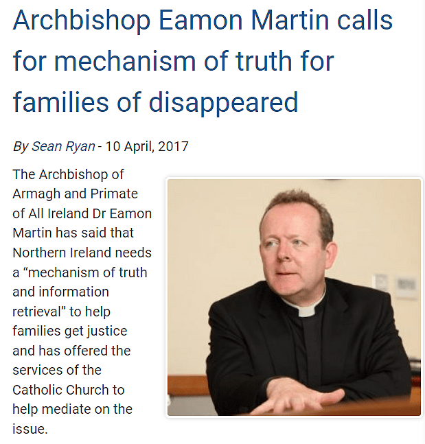 How is it that Roman Catholic authorities don’t want the full facts of Clonard Monastery’s IRA activities published, especially since Archbishop Eamon Martin [laughably] offered his services as a Truth Seeker on behalf of victims of terrorists in Northern Ireland?
