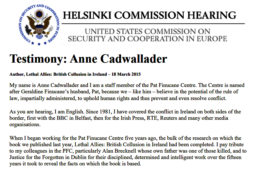 At the heart of Murray’s thesis and associated film is the work of Anne Cadwallader and the book she wrote “Lethal Allies – British Collusion in Ireland” while she worked for the IRA-Directed Pat Finucane Centre.