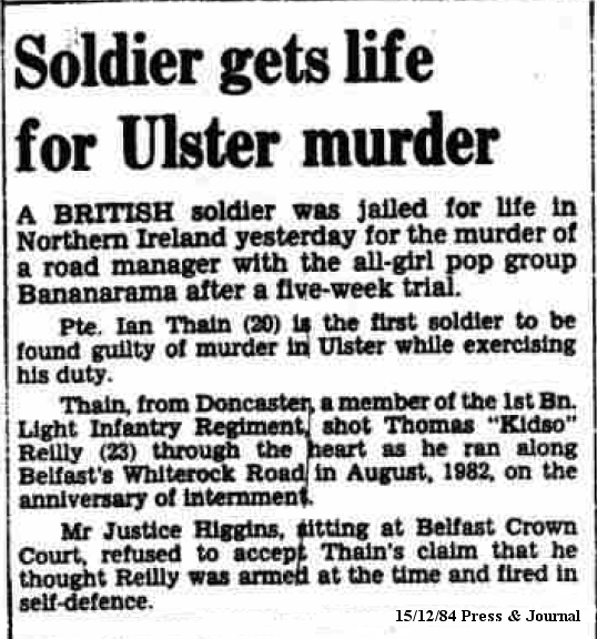 Few republicans who have lived through or studied the consequences of the IRA’s failed and abandoned ‘armed struggle’ can forget Private Ian Thain’s prosecution and conviction for the murder of Thomas ‘Kidso’ Reilly, road manager of the band Bananarama.